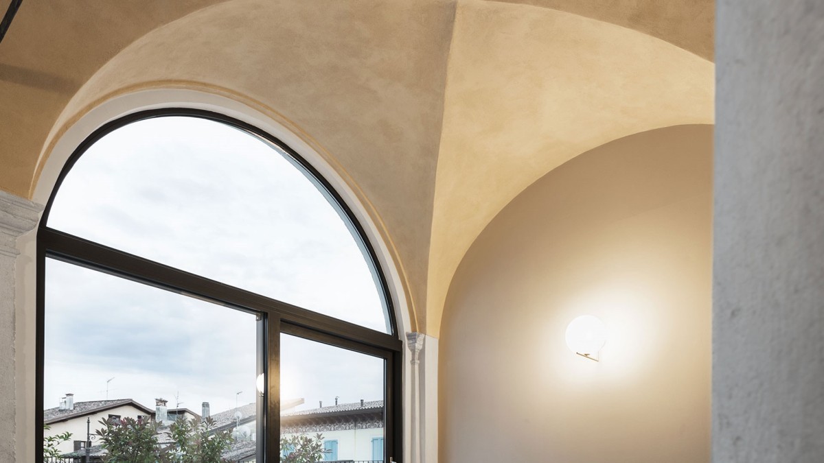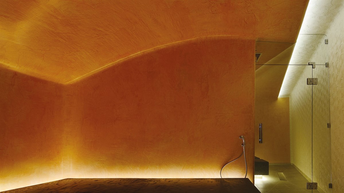 В качестве глянцевой отделки для MARMORINO NATURALE компании OIKOS для внешних и внутренних стен исторических сооружений и ценных построек.