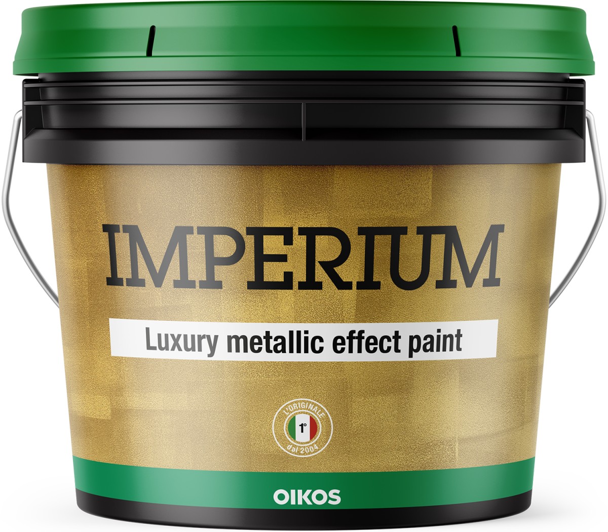 IMPERIUM производства OIKOS - это экологичная декоративная краска для внутренних и наружных поверхностей, позволяющая воссоздать превосходные эффекты ценных металлов. Материал имеется в двух вариантах, металлизированный матовый и металлизированный глянцевый, в широкой гамме цветов и фактурных отделок в зависимости от использованного инструмента. IMPERIUM наполняет великолепием и престижностью современные обстановки, обогащая их ценными элементами истории, создавая всегда актуальные и насыщенные энергией поверхности, обогащая при этом оригинальным и уникальным способом как стены, так и предметы интерьера. Материал моющийся и прочный к истиранию, не воспламеняется и без добавления формальдегида.