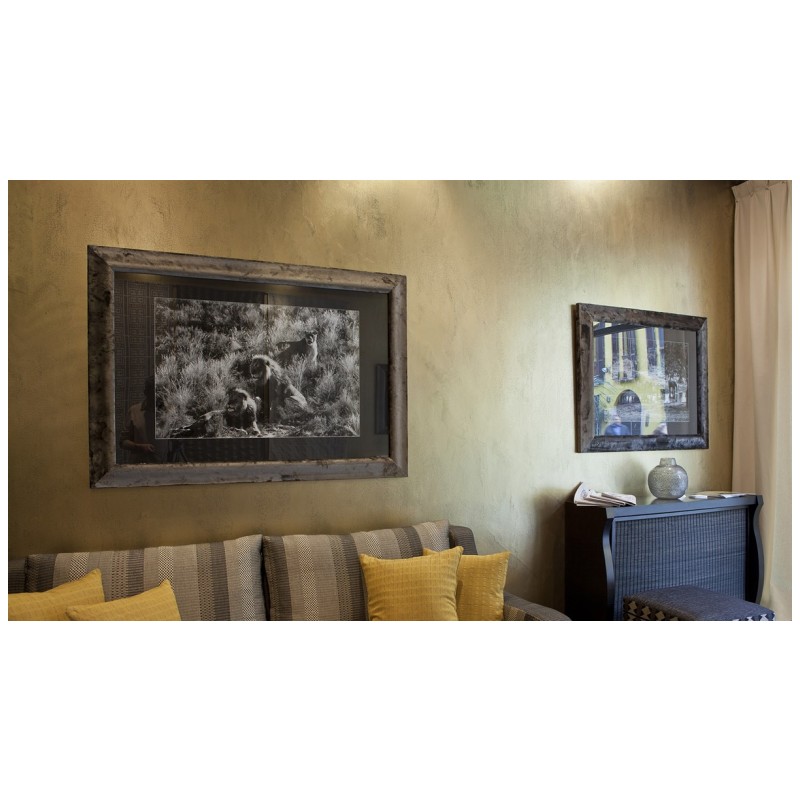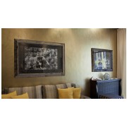 Oro antico: аккуратно выровнять стену шпатлевкой, затем нанести один слой материала IL PIGMENTATO (N 168), разбавленного на 50% питьевой водой. Подождать до высыхания, затем шпателем из нерж. стали нанести один слой ULTRASATEN OPACO (B 715), совершая вертикальные движения, сверху вниз. После высыхания, нанести, таким же образом, один слой материала IMPERIUM, разбавленного на максимум 15% питьевой водой. Наносить материал полосами шириной 30-40 см, неоднократно проводя шпателем, чтобы создать на поверхности небольшие разрывы и показать цвет фона. Расходы: ULTRASATEN 7-9 кв.м./л, IMPERIUM 15-20 кв.м./л