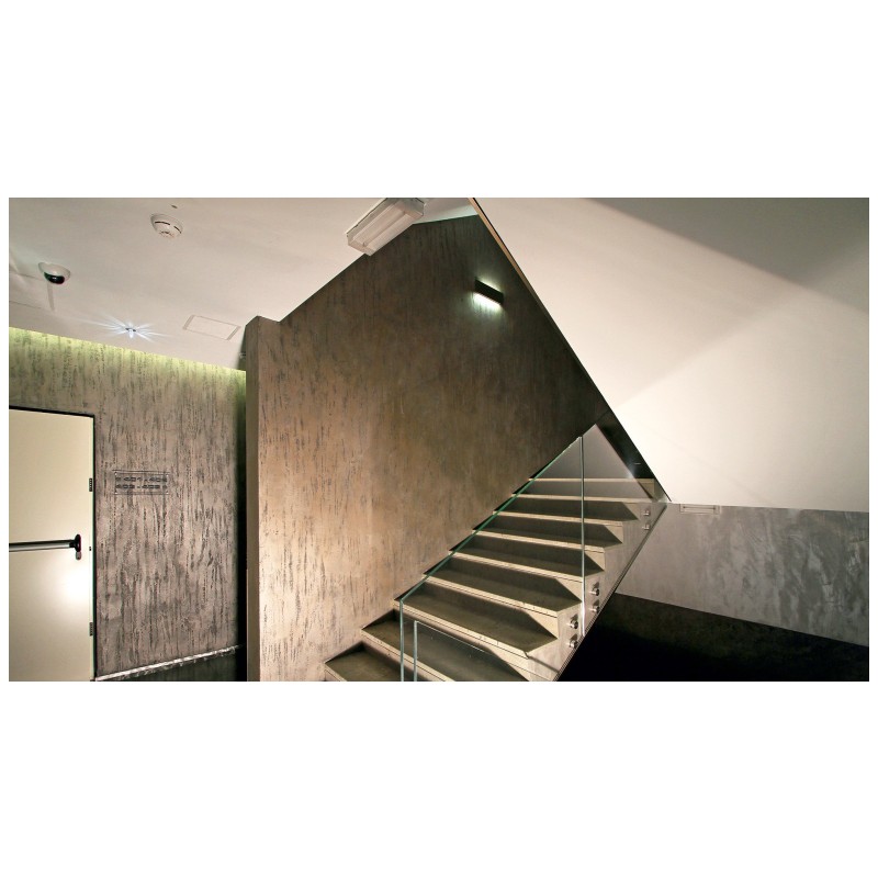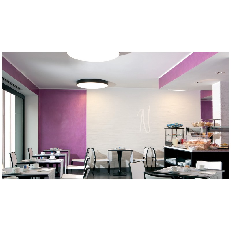 Delabrè: После выравнивания стены шпатлевкой и укрепления ее закрепляющим средством NEOFIX, нанести валиком для эмали RULLO PER SMALTO (Art. A04) один слой IMPERIUM, разведенного на 50% водой, однородно распределяя продукт по поверхности. После высыхания нанести шпателем из нерж. стали еще один слой IMPERIUM, разведенного на 30% водой, избегая прохода несколько раз по одной и той же точке. Для получения более однородной отделки можно нанести второй слой, используя небольшое количество материала. Расход: IMPERIUM 10-12 кв.м./л.