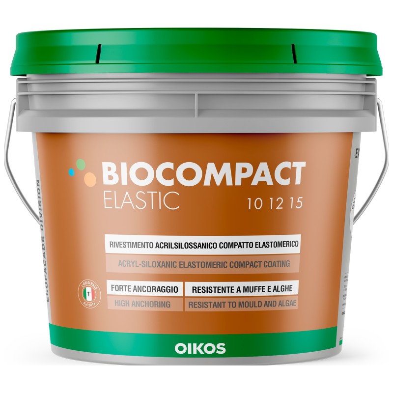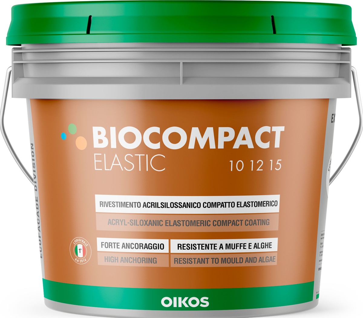 BIOCOMPACT ELASTIC by OIKOS - это однородное, эластичное покрытие с компактным эффектом и обработкой шпателем. Материал сформулирован с максимальной зернистостью 1, 1,2 и 1,5 мм, то-есть в указанном порядке BIOCOMPACT ELASTIC 10, BIOCOMPACT ELASTIC 12 и BIOCOMPACT ELASTIC 15. Продукт состоит из специальных акриловых эластомерных силанизированных смол с силоксановой модификацией в водной дисперсии, которые обеспечивают отличную устойчивость к атмосферным агентам, кислотам, морозам и оттепелям, а также сопротивление влиянию УФ лучей. Гранулы мрамора и песка отборной зернистости вместе с кроющими наполнителями на основе двуокиси титана придают составу значительную степень укрывистости и престижный эстетический вид. BIOCOMPACT ELASTIC владеет хорошей способностью наполнения, отличной степенью укрывистости и отличными водоотталкивающими свойствами, поддерживая при этом оптимальную паропроницаемость подложки. Его особая эластичность обеспечена использованием специальных акриловых эластомерных смол и синтетических волокон, которые придают материалу отличную эластичность и делают из него идеальный материал для восстановительных работ и для защиты стенных поверхностей, поврежденных отслоением и образованием раковин. При этом, материал противодействует образованию плесени и мха. Для большей защиты от образования плесени и мха рекомендуется добавить к материалу специальное санирующее средство STERYLPLUS. Продукт со слабым запахом, негорючий, безопасен для человека и окружающей среды. Соответствует минимальным экологическим критериям (CAM), сертификация уровня III. EPD.