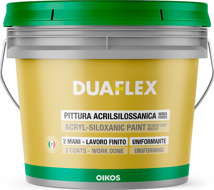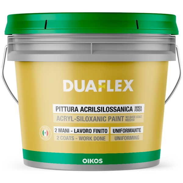DUAFLEX by OIKOS это специальная, выравнивающая, отделочная краска, заполняющая, гибкая с матовым, шероховатым эффектом для наружных и внутренних стен. Наполнители с контролируемой зернистостью (0,3 или 0,7 мм) придают материалу отличные заполняющие свойства, позволяя выравнивать при этом маленькие дефекты или неровности подложек.